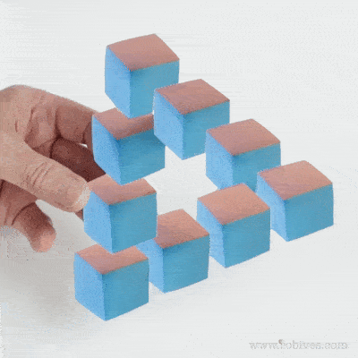 The Penrose Triangle is named for the mathematician Roger Penrose who was fascinated by 3d shapes and geometry. This paper project brings the impossible illusion to life — almost! Viewed on a screen, or with one eye closed, the model maintains its mystery but with two eyes, the secret is revealed.