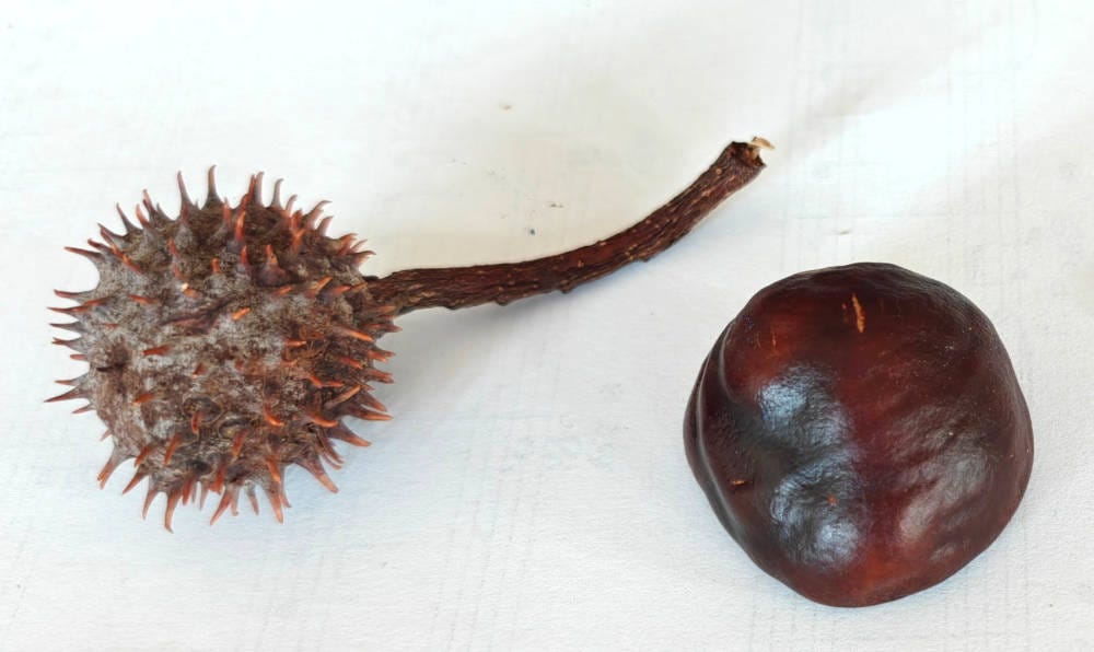 The puffer fish was the last project I made on the trip. I’d already crafted a triple-panel birthday card (you can see that in the previous post), as well as the leaf bow project, which is now up on the website. After an evening in Lugano watching a storm dance across the mountains, lightning flickering over the lake in the most fantastic display, we were heading back to our room, the rain clouds now drifting our way. Kicking through fallen leaves, we came across a particularly fruitful conker tree. There’s always something delightful about the way conkers pop out from their cases, and soon our pockets were bulging with glossy treasure.