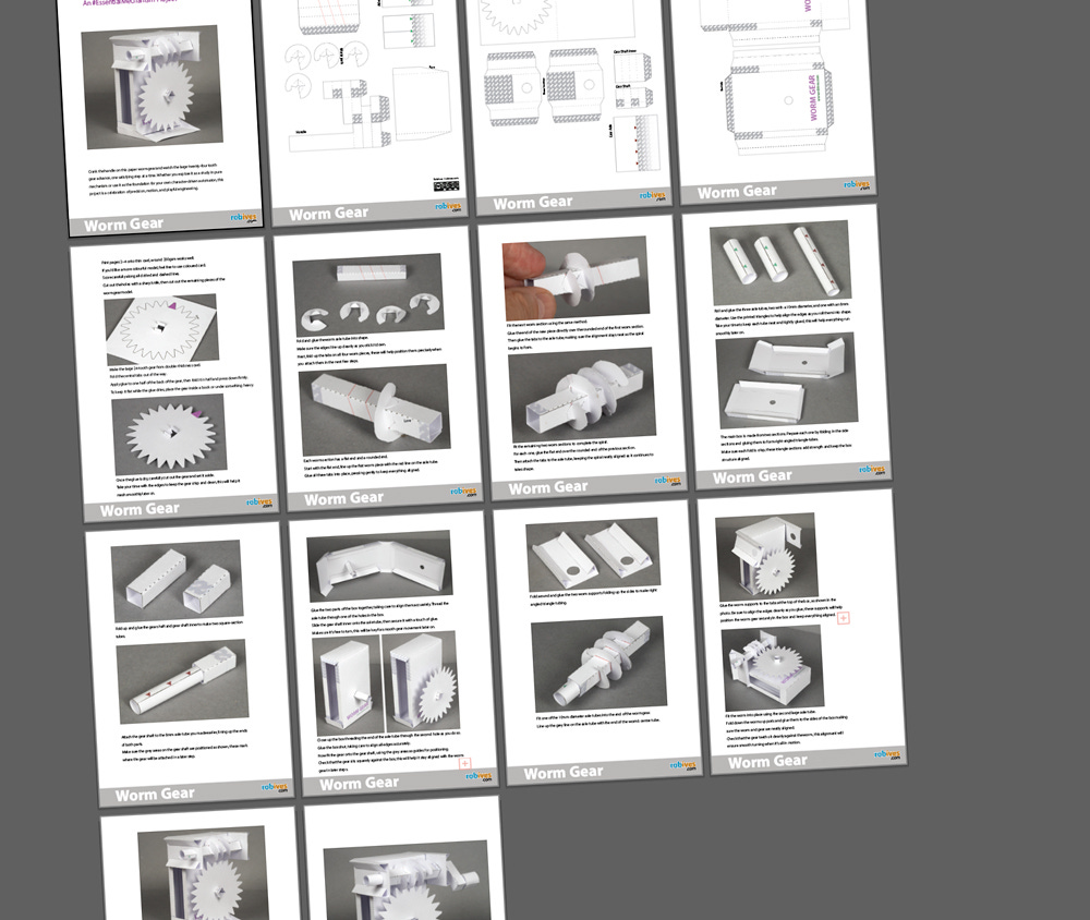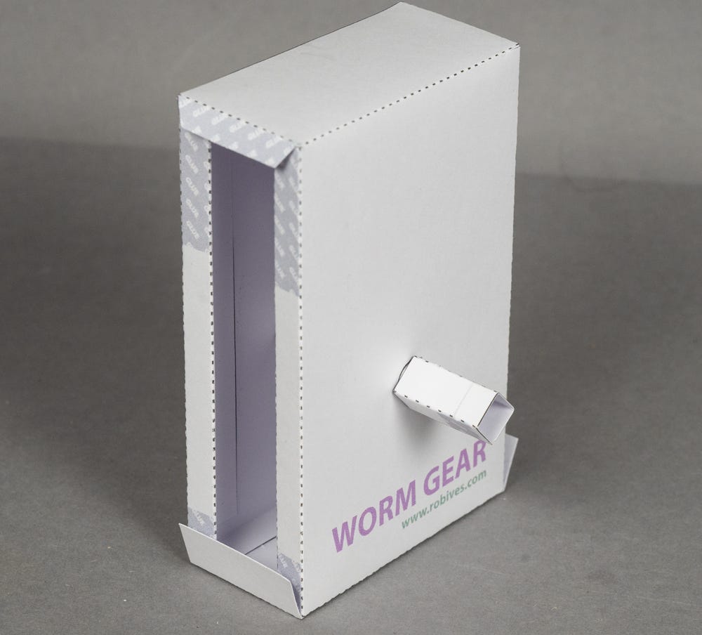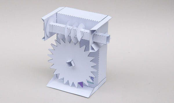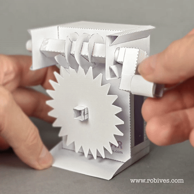 Originally shared some time ago, this updated paper worm gear project makes its official debut on the site with fresh polish and playful potential. Crank the handle to rotate the worm gear and watch the 24-tooth gear advance one satisfying step at a time. Build it as an exercise in pure mechanism, or turn it into a delightfully s-l-o-w character-based automaton that moves with intention.